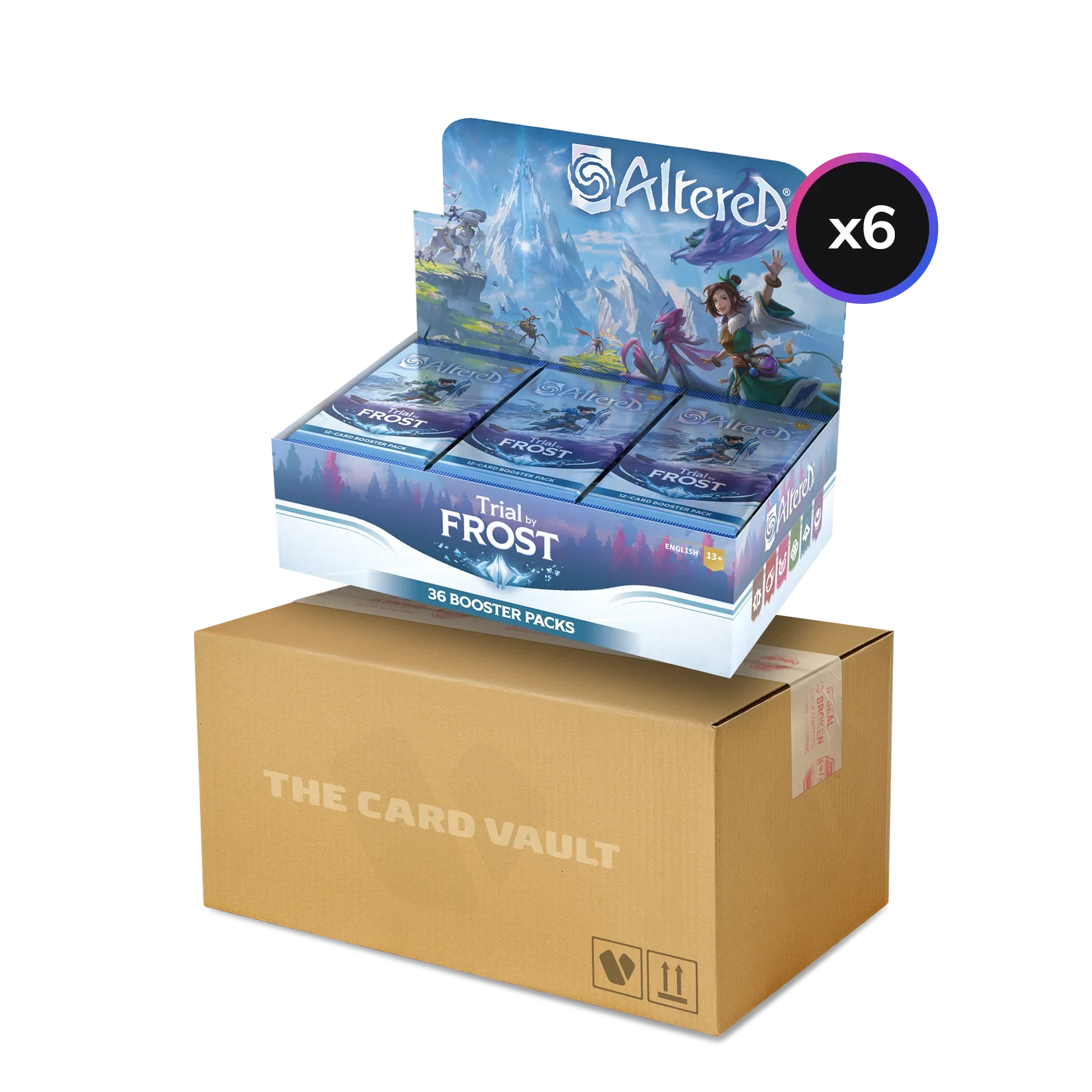 Each Altered TCG - Trial by Frost - Display Case contains 6 booster boxes.